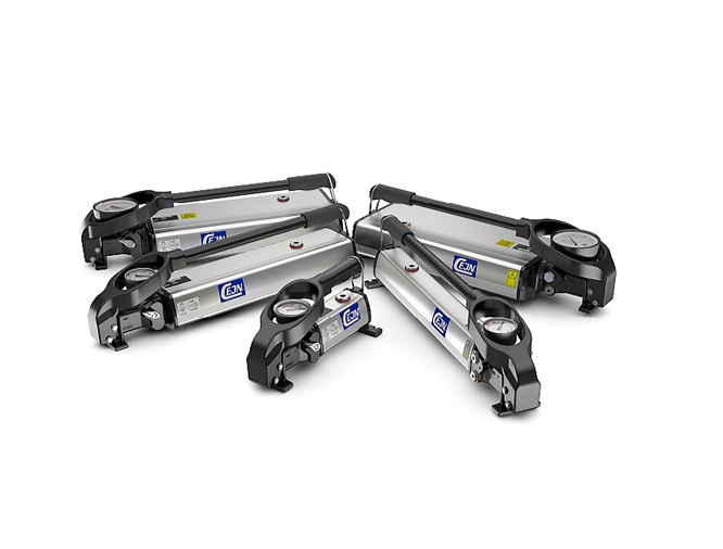 鋳鉄製で、他に比べ過酷な使用に耐えることができます。この2段階ハンドポンプには、圧力計が標準装備されています。この圧力計により、正確な圧力制御をおこなうことができます。圧力計はポンプに直接取り付けられており、特別に設計されたポンプレバーで保護されています。2段式であるため、ポンプを素早く簡単に操作でき、接続されたシリンダーやテンショナーなどの機器を素早く使用圧力に到達させることができます。このポンプは、強度が強く、作業現場や、その他の移動を伴う過酷な取り扱いにも適しており、オペレータの安全を確保します。